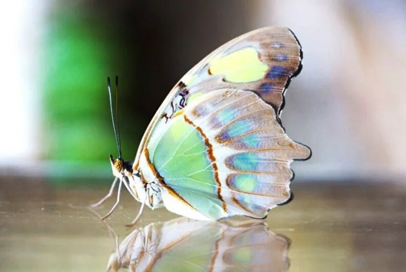 Я играла с младшим ребёнком на полу,и краем глаза уловила лёгкое движение: сомнений не было- так переливается свет через крылья бабочки.