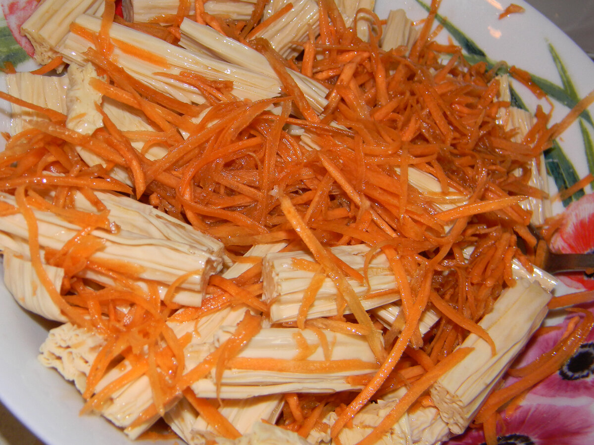 Многие из вас видели в магазинах такой продукт, как соевая спаржа. Кстати говоря, я всегда была уверена, что та самая спаржа, которую в виде салатов мы все берём в наших магазинчиках - просто растёт как зелень. Даже её насадила в своём огороде целую кучу. Вот, теперь жду урожая.)))))) А тут, совершенно случайно (хотя... все случайности происходят вовремя и закономерно - это проверено) прочитала умную и познавательную статейку, в которой и просветили меня, что поедаемая нами привычная спаржа - это не что иное, как соевая спаржа! Вот это поворот!!! Оказывается, сначала из соевых бобов путём вымачивания получают молоко. Потом его кипятят, а образующуюся пенку снимают и сушат. В итоге получается тонкий сухой лист, который представляет собой некую заготовку, вот именно её и используют в качестве основы для различных блюд. Интересна история, вернее сказать - легенда, возникновения этого продукта. Уж очень хочется с вами поделится... Первый китайский император мечтал о вечной молодости и всю