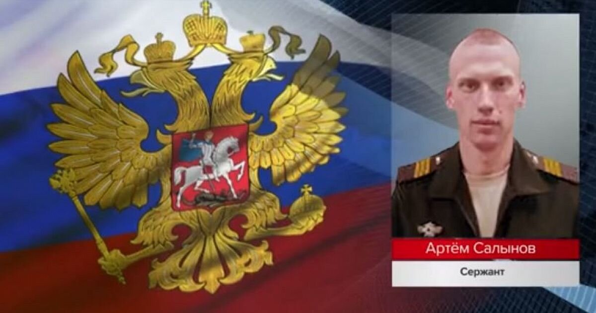 Сержант Артем Салынов, находясь в составе экипажа танка, действуя в составе мотострелкового полка, осуществлял освобождение одного из населенных пунктов от вооруженных формирований украинских националистов. Приближаясь к населенному пункту, российские мотострелки столкнулись с организованной боевиками обороной. В ходе наступления Артем уничтожил находящиеся на блокпосте «кочующий миномет» противника с экипажем и боеприпасами, а также танк, БМП и более 10 радикалов. Продвигаясь далее к населенному пункту, экипажем танка было уничтожено 4 грузовых автомобиля, в которых перевозились боеприпасы противника. Приблизившись к населенному пункту, Артем Салынов обнаружил, что дорога к нему, а также прилегающая местность заминированы. Огнем из танкового пулемета сержант Салынов вызвал цепную детонацию мин на дороге, в результате чего был создан коридор, по которому российские мотострелки стремительно вошли в населенный пункт, вытеснив из него подразделения националистов.