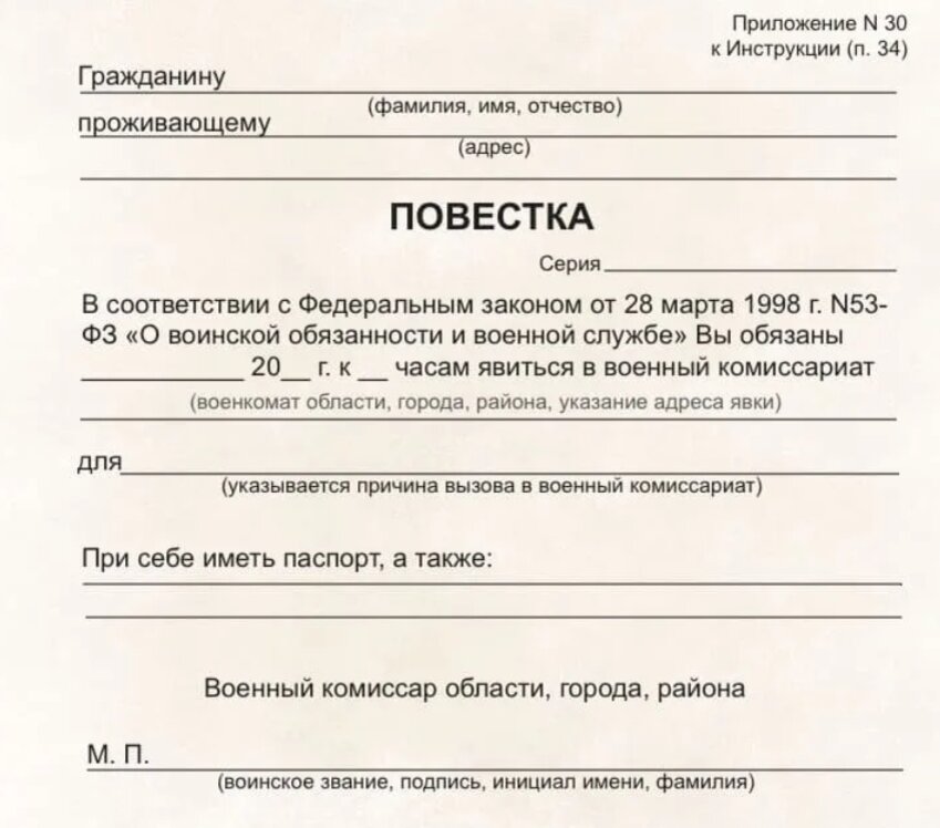Повестка – официальный документ, который выписывается по специальной форме. Она вручается призывнику лично в руки, содержит данные об адресе военкомата и дате явки. Получение таких повесток может преследовать разные цели, среди которых: