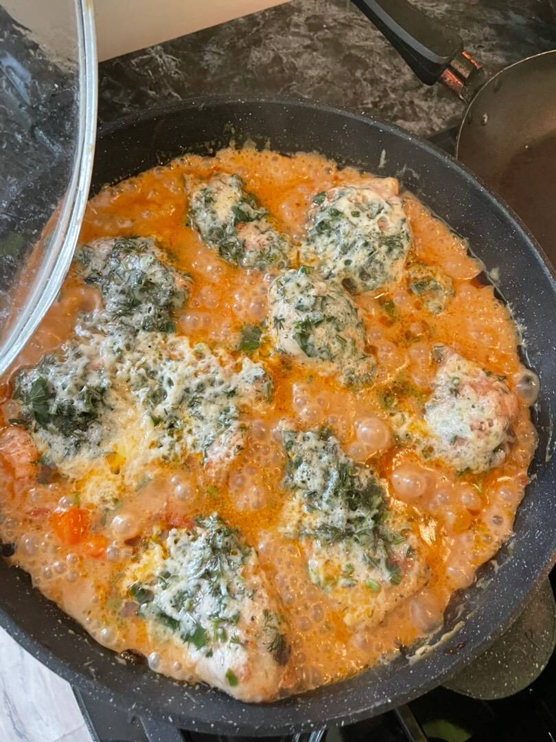 Вкуснейшее блюдо для всей семьи! Ингредиенты: Курица , Воды, Томат, Перец сладкий, Луковицы (средние), Соль, перец, паприка, сушеный чеснок, Зелень, Сыр, Сметаны, Кетчуп или томатная паста Способ приготовления: Курицу разделать и предварительно обжарить, можно с маслом можно без, кто как любит. ) После обжарки курицы на сковороде делаем подливу, обжариваем лук, мелко режем помидор, тоже обжариваем, добавляем туда перец нарезанный, и немного Сметаны с кетчупом или томатной пасты (на свой вкус). Немного потом это, и выкладываем туда курицу, которую заранее обжарили и оставляем тушиться минут на 20-30. После того как курочка стала мягкой, высыпаем сыр и зелень и оставляем под крышкой на 5 минут. Как сыр расплавится, можно выключать, и подавать с гарниром! Вкусно, пальчики оближешь 🤤.