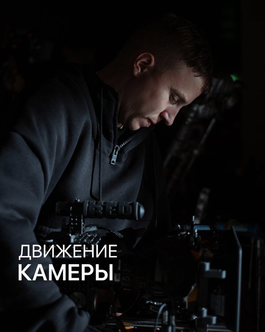 Чтобы добиться большей образности и экспрессии, статичного положения камеры может оказаться недостаточно, даже несмотря на активное движение объектов в кадре. Нужно, чтобы и камера двигалась. При этом, не стоит забывать, что передвижения камеры должны быть оправданы и задавать определённую эмоцию. ❗При перемещении камеры важно понимать одно правило. Она может двигаться в любом направлении, но не в противоположном тому, которое вы задали в предыдущем кадре. Есть несколько способов движения камеры. 🔸Наезд. Может добавлять драматизм или передавать беспокойство героя, это зависит от контекста и скорости перемещения камеры. 🔸Отъезд. Фокус внимания зрителя плавно переводится с объекта на окружающую обстановку. Таким образом, может нагнетаться атмосфера покинутости, одиночества объекта. 🔸Скольжение. Движение камеры вдоль или параллельно чему-либо. Используется для создания эффекта присутствия и усиления динамики. 🔸Подъем/спуск. Используют в основном, чтобы обозначить масштаб объект