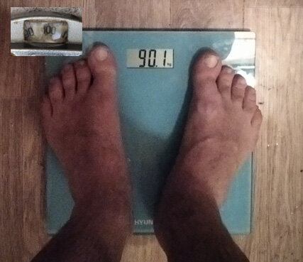Дорогие, понимаииишь, читатели блога! Докладываю о результатах, полученных за четыре месяца борьбы за стройность и здоровье. 3 января начал борьбу с собой и пузом своим. Вчера было 3 мая, вернулся с работы ооочень поздно, поэтому отчёт выкладываю сегодня утром. Для тех, кто в гостях первый раз: в начале января весил 98 кг, объём живота - 112 см. За прошедшие четыре месяца удалось кое-чего достигнуть. Неделю назад вес 91.1 кг, объём пуза в самом жирном месте на полном выдохе 100 см. За последние дни сохранял уже сложившуюся в принципе систему дробного питания: 5-6 приёмов пищи небольшими объёмами в сутки, пара яблок, 1-2 банана, салат из огурцов-помидоров-укропа, 3-4 чашки зелёного чая, 1-2 стакана томатного сока, 1,5-2 литра воды. Ужин в большинстве случаев состоял из чашки зелёного чая. Кроме того, в конце апреля исполнил свой гражданский долг - сдал очередную порцию донорской крови. Надо было бы сразу встать на весы - всё же сразу минус 500 мл, но вместо этого - на работу... И, честн