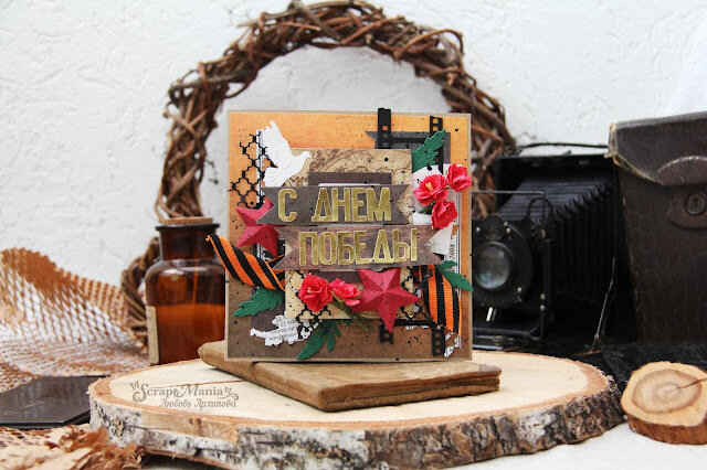 Всем привет! Сегодня с вами я, Любовь Архипова. Решила вам показать как можно сделать открытку ко Дню Победы с поп-ап элементом - вечным огнем, который при открытии открытки эффектно смотрится. День Победы это большой праздник, который был достигнут большим трудом наших родных и близких, тех, кого мы видели только на фотографиях в семейных альбомах, тех, о ком храниться память в наших семьях, тех, кто отдал жизнь, сражаясь за родину... И нужно помнить историю и ее уроки. Счастья всем и мирного неба! Формат открытки примерно 15х15 см. В основе крафт-картон 200 гр/м и коллекция "Мужчина на миллион". В этой коллекции есть листы, которые подошли по цвету и сюжету. Для этой открытки я специально сделала гвоздики из фома, подобрала вырубку, подходящую к тематике открытки, а так же нашла георгиевскую ленту. Предлагаю вам посмотреть видео мастер-класс, где я все подробно рассказываю и показываю Голубь - символ мира, звезды, как на Кремлевских башнях, гвоздики, георгиевская лента, вырубка сето