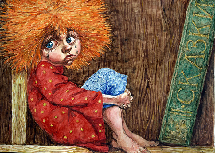 — Чего тебе? — Я карандаш потеряла. Синий. — Я не брал. — А вы можете мне помочь его найти? — попросила Девочка. — Пожалуйста. — Ещё чего! — усмехнулся Домовой.