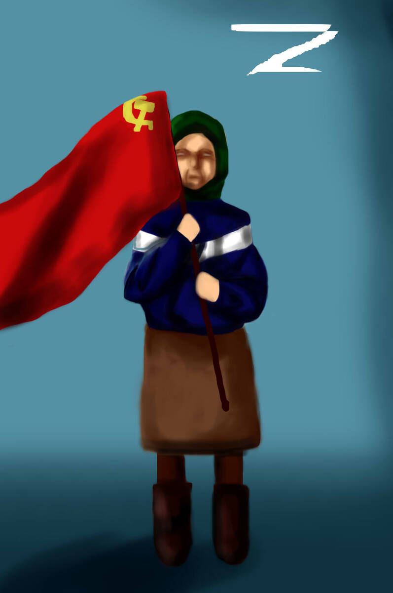 Цифровое граффити "Бабушка с красным знаменем" Самая популярная украинская бабушка с красным Знаменем в руках появилась на фасадах и баннерах во многих уголках России. Многие россияне, вдохновились поступком храброй женщины. Наши учащиеся не остались в стороне. И решили по своему воплотить женщину в визуальный образ. Котов Никита Андреевич МБОУ СОШ пос Рудный 6 класс АРТ-трек "Арт-город"