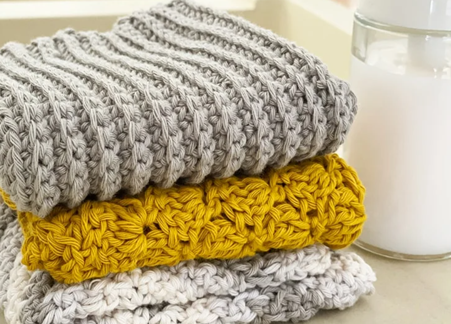 Всем привет, друзья! Сегодня, я хочу поделиться с вами тремя простыми проектами, которые позволят не только создать полезную вещицу, но и отработать навыки вязания крючком. Признаться честно, у меня накопилось множество незаконченных изделий, это и свитеры крючком, и кое-какие игрушки. Я решила на майских праздниках их закончить, поэтому пришлось вспомнить, как вообще вязать крючком. И я решила сделать несколько простых проектов для начала, которые помогут мне в этом. Думаю, выпуск окажется полезным и для вас, так как я буду использовать остатки пряжи, которых у меня накопилось несколько мешков. Вообще, я планирую сделать несколько проектов из остатков пряжи, потому что выкидывать их жалко. По ним я сделаю большой выпуск. Сегодня я хочу заострить внимание на кухонных полотенцах или салфетках. Для вязания полотенец я использовала три вида узора, а также остатки хлопковой пряжи, подходящей под крючком № 4,5. Мне очень нравится цвет шафран, который я активно использую в своих проектах, а