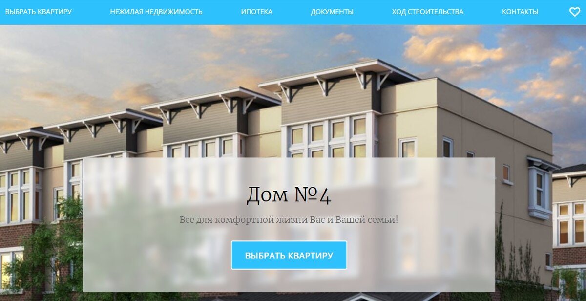 — Отдельный блок с информацией о жилом комплексе. Все, чем привлекателен ваш ЖК стоит вынести на эту страницу. Расскажите о идее создания, качестве дома, разместите видео и фото;