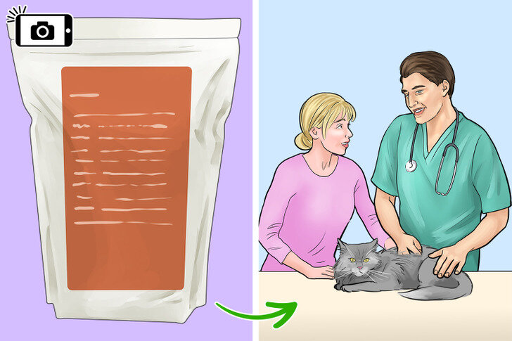 Совет: Прежде чем идти к ветеринару, сфотографируйте переднюю и заднюю части упаковки кошачьего сухого или влажного корма, чтобы специалист мог изучить состав и ингредиенты рациона вашей кошки. Сделайте то же самое с любыми лакомствами, которые вы регулярно даете своему питомцу. Так вы сможете получить максимальную пользу от этого визита.