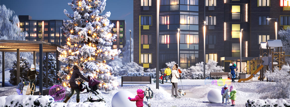PROJECT: Комплексный проект благоустройства территории и концепция фасадных решений жилого комплекса «Баташевский сад-2» LOCATION: Тульская обл., г. Тула, ЖК "Баташевский сад", Венёвское шоссе (К№71:14:020701:2299) YEAR: 2020 CREATIVE TEAM: Долецкая Елена, Самохвалов Алексей RENDERING: Чурочкина Антонина «Баташевский сад-2» - вторая очередь строительства большого жилого комплекса «Баташевский сад», расположенного на стыке двух районов города – Пролетарского и Зареченского, а также в 50 метрах от Баташевского сада. Такое местоположение делает комплекс максимально привлекательным: дома у парковой зоны утопают в зелени, а река Тулица разнообразит ландшафт территории. Обе очереди жилого комплекса запроектированы в едином стилистическом и цветовом решении, оставаясь при этом индивидуальными и независимыми друг от друга. Видовой кадр. Общий вид жилого комплекса Концепция фасадных решений: индивидуальность, практичность и безопасность. Фасады домов Баташевского сада-2 сохраняют фирменн