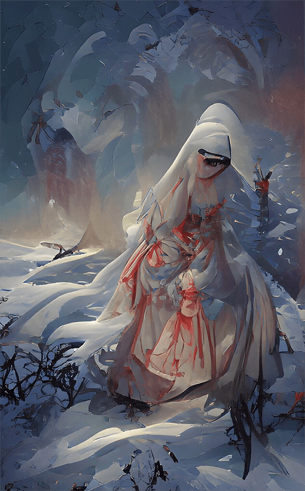 Да только лето пришло, а снегурка все так же со стариками живет, словно ей солнце нипочем. Пара тогда уже совсем постарела, ходили еле-еле, друг друга поддерживали, а все от нее глаз отвести не могли, ровно наваждение какое. Так бы и умерли, только ты прав, батюшка, семьи у них были. И была у Василя сестра младшая, Маруся. В дом к ним давно никто не ходил, боялись тварь ледяную к своему двору привадить, а Маруся девка молодая, не побоялась. Пришла да завлекла снегурку сладкими речами в лес за ягодами. Та и рада пойти. Обратно Маруся вернулась бледная, ни кровиночки в лице не было, а все одно улыбалась. И второй раз позвала по ягоды, снегурка снова пошла. Чего не пойти? А в третий раз позвала она ее с подружками через костер прыгать, аккурат день Ивана Купалы был. Ну и...