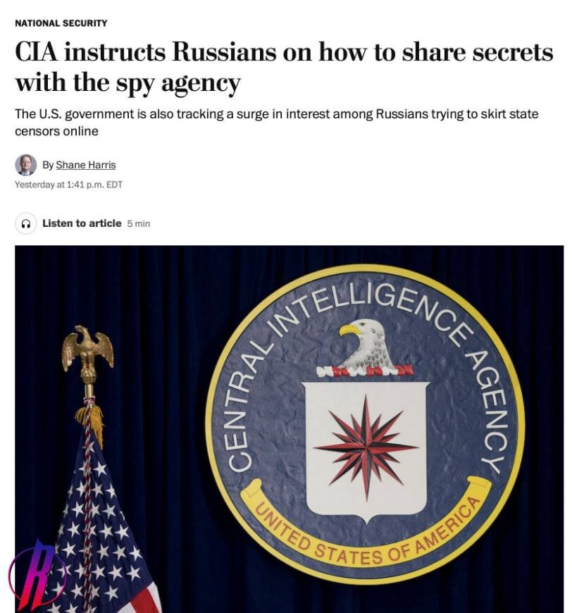 Американская вербовка вышла на новый уровень: ЦРУ распространило инструкции на русском языке по установлению связи с разведкой США — The Washington Post Управление рекомендует при попытках установить связь использовать VPN и другие методы. Сотрудники ЦРУ распространили инструкции на русском языке, разъясняющие, как можно связаться с ними в сети. Американская сторона рассчитывает активизировать вербовку россиян в свете специальной военной операции РФ на Украине.