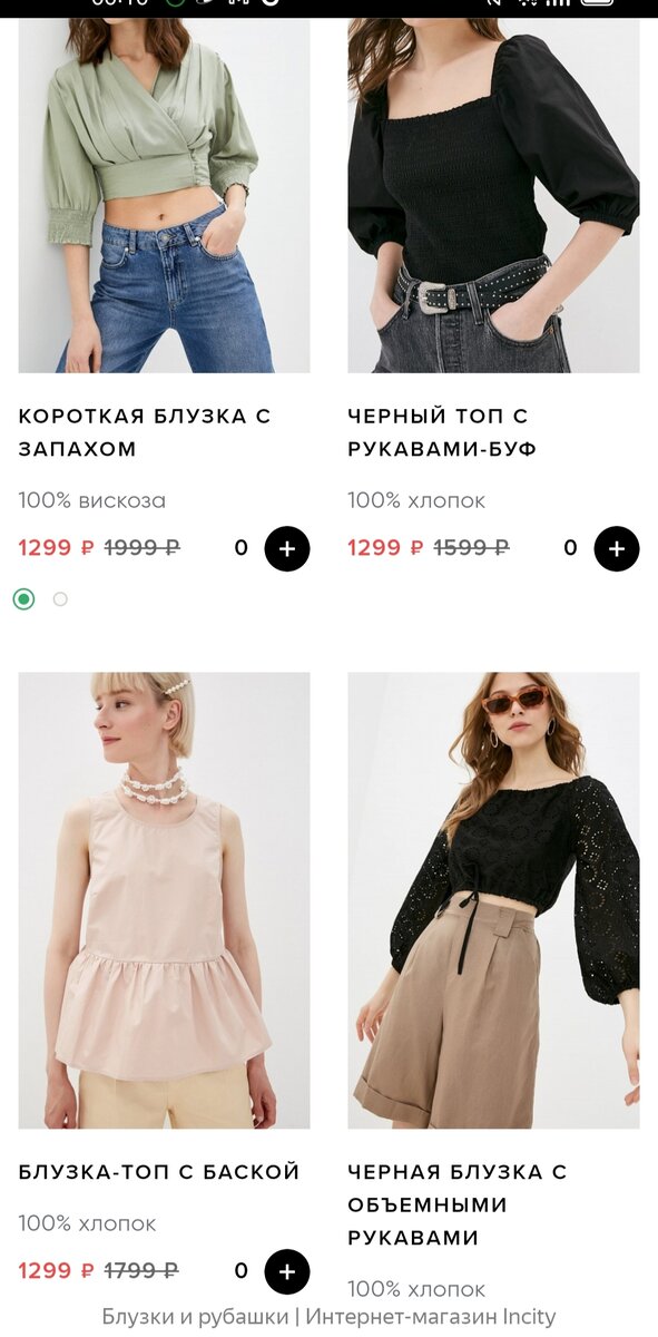 Интернет-магазин "Incity" c телефона очень удобен: сразу видно цену и состав. В живом магазине при ближайшем рассмотрении не оказалось ничего дешевле 3 тыс. р. Некоторые фасоны непрактичны - короткие лифы или блузки, открывающие живот. Подобные фасоны были популярны в 1940х в пляжной моде.
