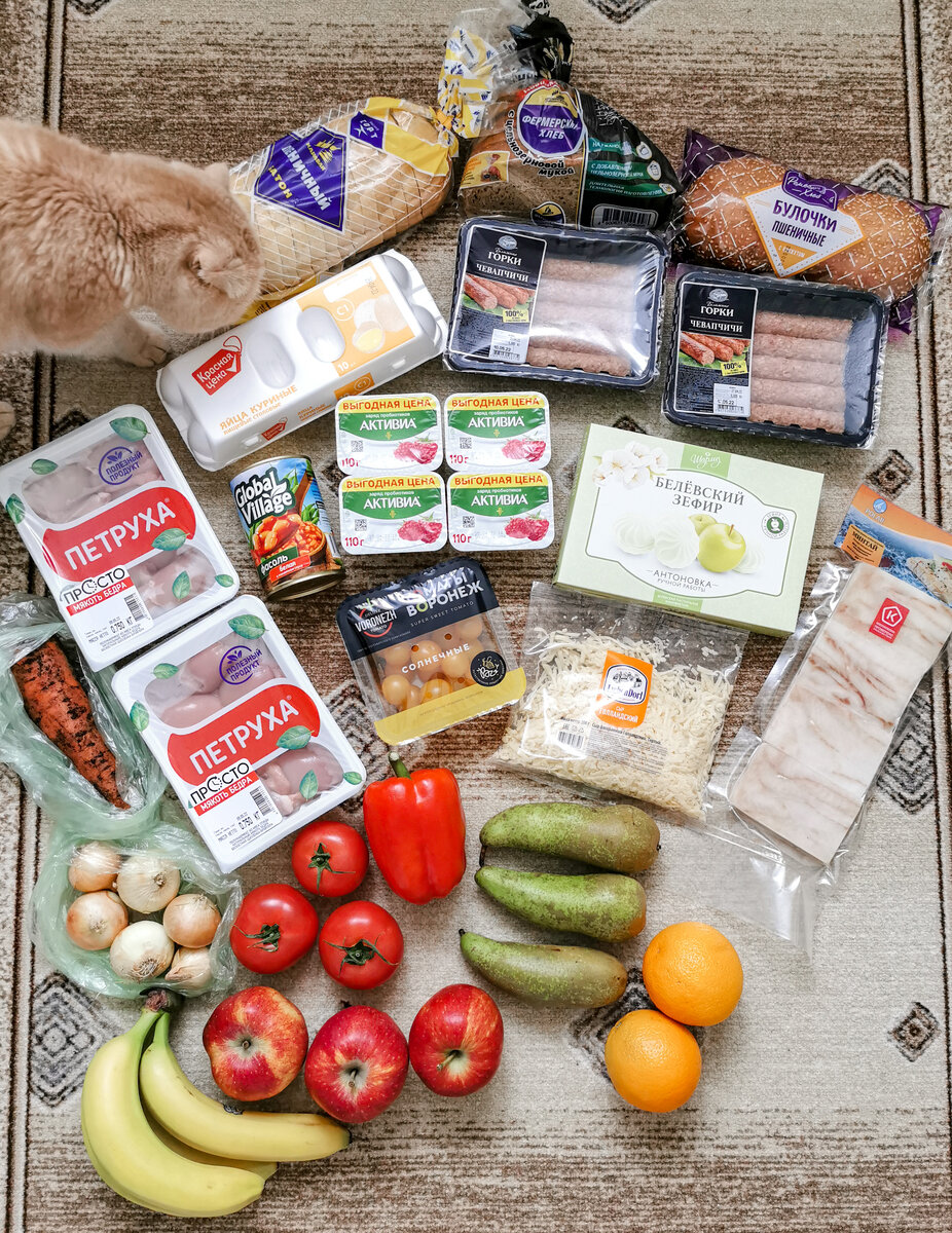 Очередная закупка продуктов до конца недели, т.е. на 4-5 дней. Пепед закупкой всегда проверяю холодильник и всем советую. Таким образом не покупаются продукты-дублёры и нет переизбытка свежих овощей и фруктов. У нас остались ещё в достаточном количестве молочные продукты, зелень, яблоки, огурцы и красные черри. Поэтому было куплено следующее: По чеку купленные продукты вышли на 2406.12₽