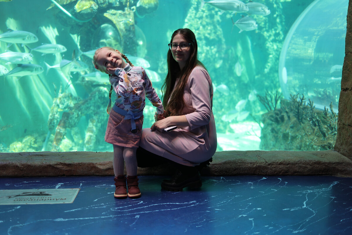 В праздничные дни мы посетили океанариум в Крокус Сити. Мы хотели попасть к открытию, а это 10:00 часов, что довольно сложно сделать с двумя маленькими детьми и ещё надо учитывать время на дорогу - 40 минут. Приехали мы к 11:00, что тоже неплохо. Парковка Припарковались прямо у здания Океанариума. Парковка платная, но если покупаешь билет, то карточку для парковки намагничивают и получается первые 3 часа бесплатно и далее 100 рублей в 1 час. Цены Стоимость билета для одного взрослого 1300 рублей в праздничные и выходные дни. Если попасть в будний день, то билет будет стоить 1000 рублей. Детям до 4х лет бесплатно. Детям 4-13 лет в праздничные и выходные стоимость 900 рублей, в будние 700 рублей. Также есть семейные билеты 2 взрослых + 1 ребёнок (4-13лет) 2200 в будние дни, а в праздничные 3200 , 2 взрослых + 2 ребёнка (4-13 лет) 2900 в будние дни, в праздничные 4000 рублей. Гардероб В здании есть гардероб, это удобно так как в океанариуме тепло, а в отдельных помещениях вообще ж