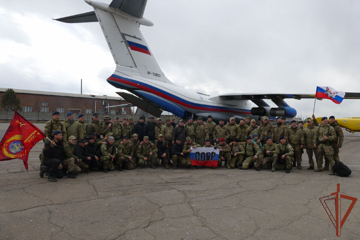 В Иркутск вернулись военнослужащие и сотрудники Росгвардии, выполнявшие служебно-боевые задачи в ходе проведения специальной военной операции на территории Украины. Росгвардейцы прилетели на родную землю с боевым настроем, из самолета бойцы выходили под звуки Государственного гимна с копией Знамени Победы в руках и флагом Российской Федерации. Личный состав приветствовал начальник тероргана генерал-майор полиции Алексей Сапожников. Он отметил высокий профессионализм росгвардейцев и их человеческие качества. «Поздравляю Вас с возвращением из служебной командировки. Вы с честью и достоинством выполнили все поставленные задачи, исполнили свой долг, показали лучшие качества - мужество, выносливость, любовь к Родине. Вы не раз рисковали жизнью, встав на защиту мирных граждан. Несли службу по охране общественного порядка и безопасности мирного населения Украины, охраняли особо важные государственные объекты, освобождали города от нацизма, оказывали гуманитарную помощь. И самое главное, все