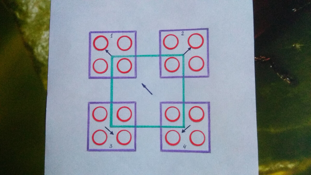 Эта задача у меня ассоциируется с тимбилдингом, то есть командообразованием. Когда слаженно действующая группа людей работает над поставленной целью. Существует несколько видов тимбилдинга: исторический, спортивный, психологический, творческий, экзотический. Осталось подумать, к какому из них мне отнести четыре слова, которые нужно поставить в квадраты 1, 2, 3, 4 по часовой стрелке, начиная с указанного кружка. Слова следующие: МУХА, НОЧЬ, ПЛАЩ, СОВА. Что между ними общего? То, что они крылатые. Предлагаю отнести их к экзотическому виду тимбилдинга. Согласны? Давайте теперь перейдём к задаче. Если правильно поставить в квадратах слова, то в центральной фигуре можно прочитать название уникального растения, стебли которого используются для шлифовки металла и чистки посуды.