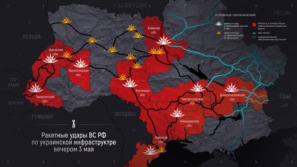 Карта ракетных ударов ВС России по транспортной инфраструктуре Украины. Вот теперь ВКС России дадут прикурить железнодорожной инфраструктуре Окраины, так как нет мирных жителей и плотной застройки. Одни станции, подстанции и рельсы. Всё что привезет коллективный запад, так все и останется на въезде, если вообще останется. Боевой опыт в Сирии как раз в тему. Здесь ещё проще, ракетами земля-воздух. А уж сколько этих ракет и комплесов, мы все наслышаны. США хотя чужими руками жар загребать.... А Россия целенаправленно и планомерно, отодвигает от своих границ этот "жар", чем дальше, тем лучше. Слава Армии России! Правда на нашей стороне! #демилитаризация Украины
