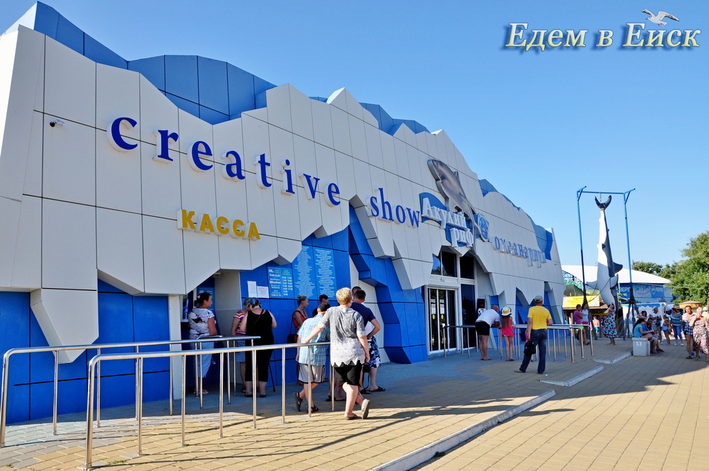 Океанариум "Акулий риф" Похожий внешне на скалистый ледяной остров, внутри океанариум – настоящая подводная сказка для детей и взрослых. С самого открытия в 2009 г. "Акулий риф" стал популярным местом отдыха и развлечения не только для жителей города и района, но и для многочисленных гостей Ейска. Океанариум является своеобразным "живым" музеем с обитателями подводного мира в качестве экспонатов. О внушительных размерах всей экспозиции (700 кв.м.) можно судить уже при входе. Огромная семиметровая акула, которая висит при входе, станет отличным дополнением к фотографиям с отдыха. Немного об экспозиции океанариума Многообразие обитателей водной среды, оригинальный дизайн помещений и аквариумов, интересные программы, увлекательные эффекты и анимация – вот что сделает незабываемым Ваше посещение "Акульего рифа"! Самый маленький из представленных двенадцати аквариумов вмещает 300 л воды, а самый большой – 180 тыс. л. Каждый аквариум – это отдельный водный мир с флорой и фауной тех или ин