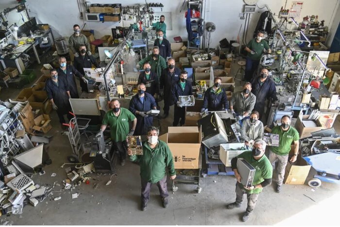 Офис Игнасио Гарсия — своеобразная витрина для творений его компании: табличка, один из столов, даже горшки для растений. Все эти предметы сделаны из электронных отходов. Бизнес Гарсии восстанавливает компоненты и сырье из выброшенных электронных устройств для перепродажи. Работники достают пластиковые и металлические детали, превращая их в новые продукты. Испанская компания называется La Hormiga Verde, или «зеленый муравей», в честь «муравьиной» склонности Гарсии к сбору и хранению вещей. «Я потерял работу в 2018 году, и мне пришлось заново искать себя, — говорит 50-летний Гарсия, инженер-технолог, проработавший 15 лет в отрасли производства биомассы. «Посмотрев на свой старый мобильный, я увидел возможность для бизнеса». Компания La Hormiga Verde перерабатывает 99,5% из примерно 1200 метрических тонн выброшенных предметов, которые она собирает каждый год. Само существование бизнеса указывает на проблему: старые телевизоры, компьютеры и мобильные телефоны накапливаются повсюду. Хотя п