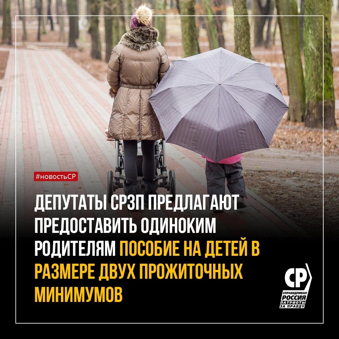 В России насчитывается около шести миллионов неполных семей. Подавляющее большинство из них испытывает большие финансовые проблемы, многим не хватает денег не только на полноценное развитие своих детей, но и просто на еду. Согласно последним соцопросам, около 85% россиян считают, что именно государство должно помогать гражданам в улучшении демографической ситуации и создавать для этого необходимые условия. С мнением россиян сложно не согласиться. СПРАВЕДЛИВАЯ РОССИЯ – ЗА ПРАВДУ внесла на рассмотрение Госдумы законопроект, в котором предлагает предоставить одиноким родителям пособие на детей в размере двух прожиточных минимумов. На сегодняшний день это от 21 до 46 тысяч рублей в зависимости от региона проживания. "Без нормальных социальных выплат, пособий на детей, льгот по оплате ЖКХ и возможности бесплатного обучения в вузах государство будет скатываться в демографическую яму, выползти из которой уже через несколько лет будет практически невозможно, " - уверен Сергей Миронов.