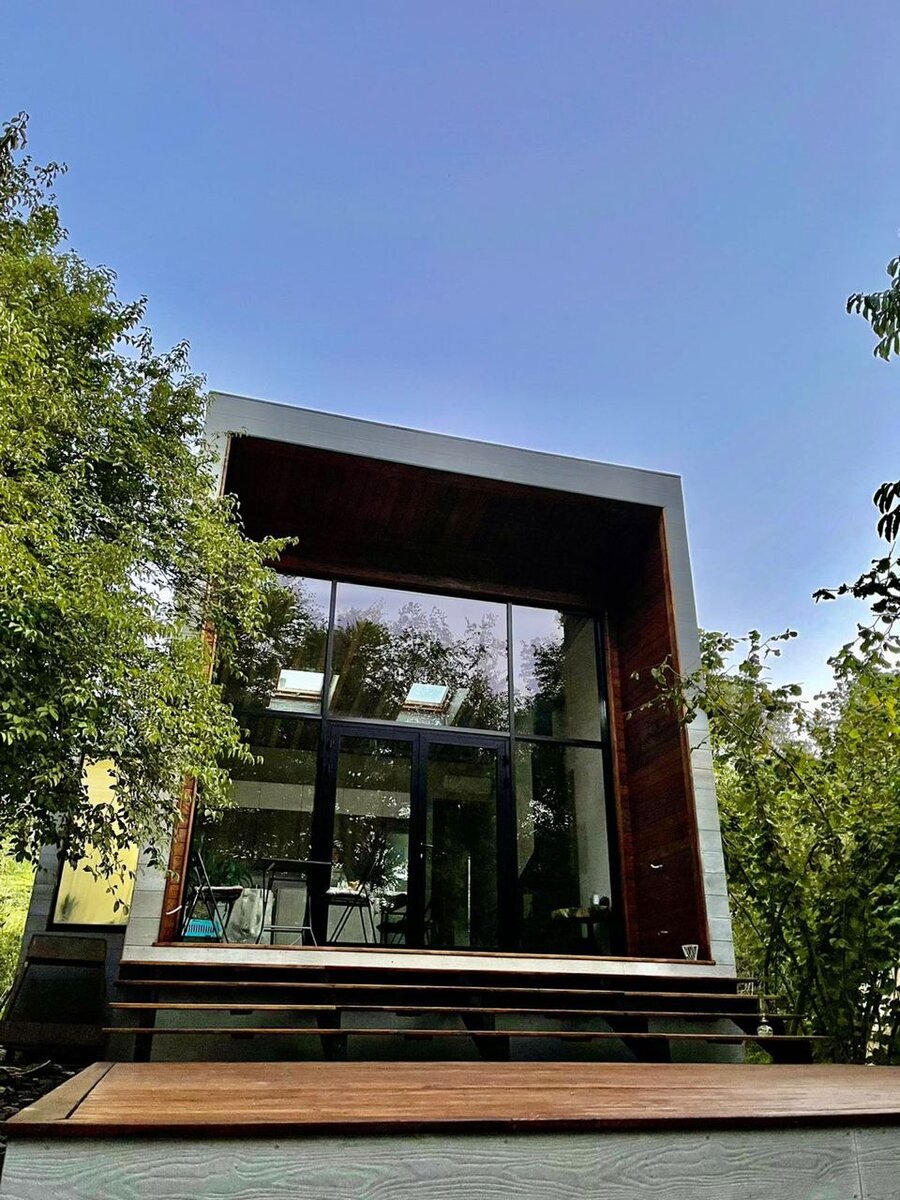 Как же сильно мы любим нестандартные проекты. Тем более когда они такие красивые) Главной комнатой в этом доме можно с уверенностью назвать гостинную. Много остекления, и, как следствие, много естественного света. Торцевая стена полностью выполнена из панорамных окон, плюс в кровле сделано дополнительное окно по центру гостинной. Конечно, перед домом есть терраса, с которой спускаются ступеньки во внутренний двор. А во дворе уже можно сделать все что угодно: детскую площадку, гриль-домик, летнюю кухню, бассейн, в конце концов)) Еще один момент - это высота потолков. В самой высокой точке высота составляет 4,24 метра. Ощущение большого пространства, много естественного света, именно это и создает уют в гостинной. Также в доме есть две комнаты, которые можно использовать как спальни, или сделать из одной из них кабинет или детскую. Техническое помещение находится в центре дома и из него удобно протянуть коммуникации к санузлу и кухне-гостиной. Объект сдали давно, но все равно поздравл