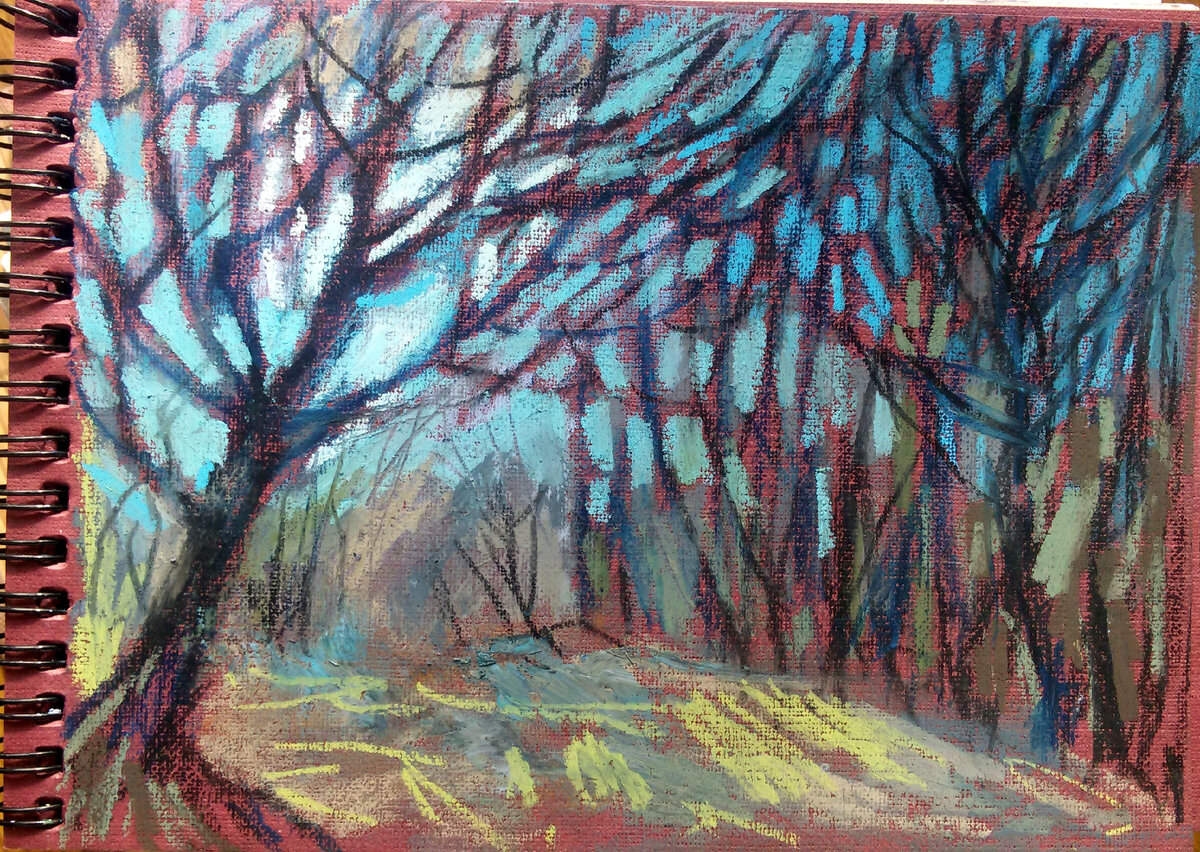 У каждого из нас это что-то свое. Кто-то способен вообще каждый день солнышку радоваться, - и он счастливый человек. Кому-то помогает восстановить равновесие физическая работа или задушевная беседа, кому-то вышивание крестиком или прогулки в одиночестве, а мне - рисование. Поделюсь сегодня и я с Вами своими маленькими радостями, ведь когда ими делишься, то они радуют еще больше. Если в выходной никуда не нужно идти, то за рисованием день пролетает незаметно. Как одна минута. И даже после долгого рабочего дня мне хочется выкроить час-другой для рисования, жаль, что время не резиновое, и лечь спать получается уже за полночь. Рисунки меня ни к чему не обязывают, зато радости от них - море. Иногда рисую пейзажи с фотографий, иногда с натуры. Вот этот маленький домик под соснами - нарисован на любимой даче: Сделала зарисовку, пока костер со старой листвой догорал. Сосны рядом с домиком выросли за двадцать лет очень высокими. Точно знаю, что буду еще много-много раз их рисовать, люблю эти
