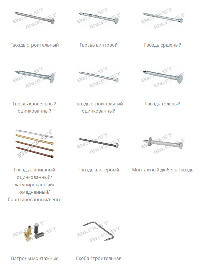 Чтобы соединить какой-либо материал с основанием, весьма актуально использовать гвозди. Изделия просты в обращении, не станут причиной возникновения проблем. Чтобы их забить, необходим молоток и небольшие физические усилия. Справиться с такой работой сможет любой человек, независимо от его профессиональных навыков. В связи с этим гвозди, купить которые можно в нашем магазине, пользуются большой популярностью и должны быть у каждого дома. Такие изделия отличаются по размерам, форме и назначению. Посмотреть какие они бывают, прочитать технические характеристики и заказать гвозди оптом по выгодной цене удобно в нашей компании. В каталоге на официальном сайте можно найти следующие типы гвоздей: Также в каталоге компании можно изучить монтажные патроны, строительные скобы. Они помогают закрепить различные типы материалов. Все изделия, которые реализует наша компания, отличаются долгим сроком службы и высоким качеством. Гвозди, цена на которые не завышена, способны на протяжении многих лет у