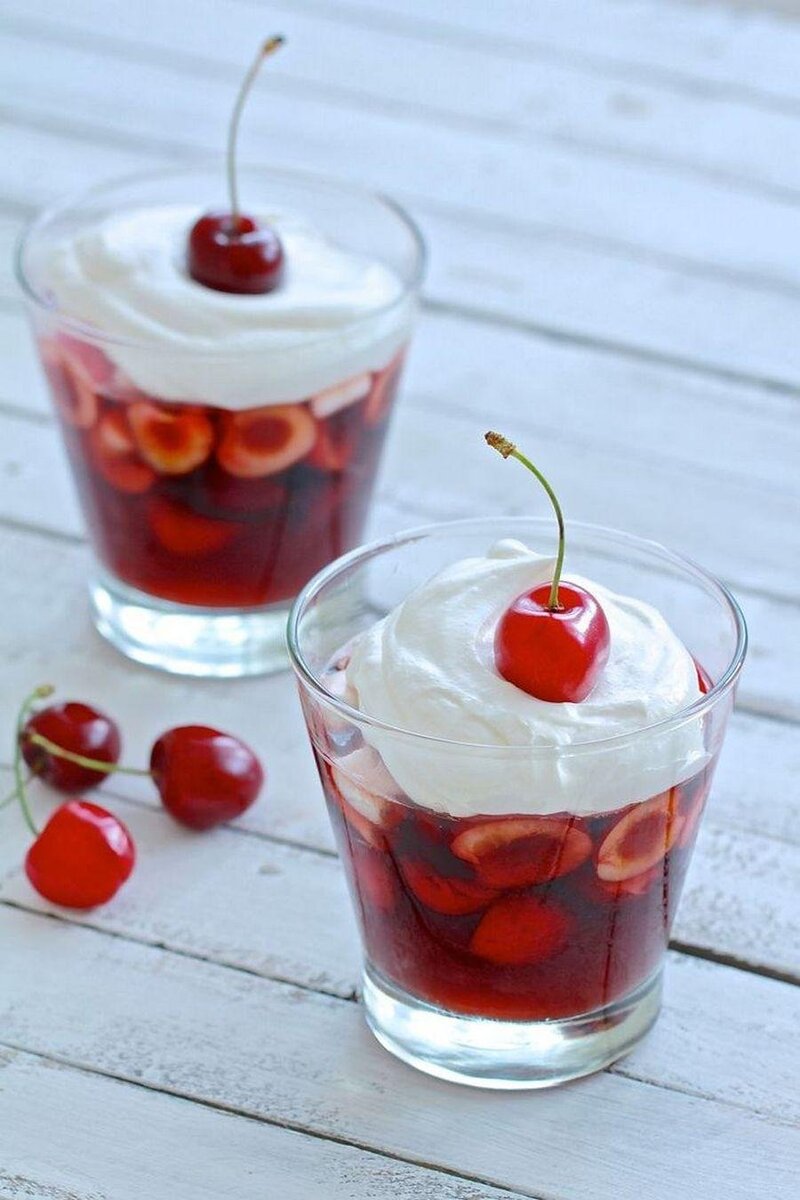 Прежде, чем мы приступим к приготовлению вишневого желе, я бы хотела вкратце рассказать Вам историю создания этого десерта. Слово «желе» пришло к нам из Франции и в переводе «gele’e” означает «студень», «гель» В XIX в. американский инженер Питер Купер разработал получение желатина из отходов мясного производства. Спустя 50 лет аптекарь Уэйт добавил в порошок красители и подсластители, так и получилось желе. Но никто не хотел его покупать, и Уйэт продал изобретение соседу Вудворду, именно он сделал желе популярным десертом. Вишневое желе пришлось по вкусу даже Биллу Клинтону. На пике популярности желе, американцы употребляли по восемь упаковок желе ежесекундно. Итак, давайте приступим к приготовлению вишнёвого желе. Ингредиенты, которые нам понадобятся: Первым делом мы должны замочить 20г желатина в 100 мл холодной воды. Пока желатин застывает, мы берём кастрюлю, наливаем в неё 500 мл воды, добавляем 150г сахара и варим до кипения. Пока вода с сахаром варится, подготовим вишню. 300г