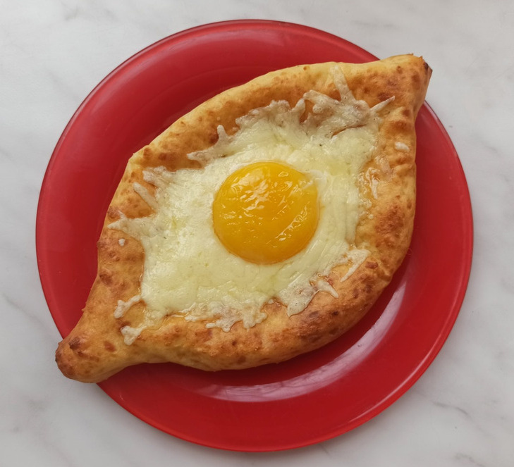 Конечно, такие хачапури далеки от аутентичного грузинского блюда, тем не менее они очень вкусные: у выпечки хрустящая корочка и воздушное тесто, которое можно отламывать и макать в желток вперемешку с расплавленным сыром. А по сытности, пожалуй, хачапури и вовсе не уступают оригинальным.