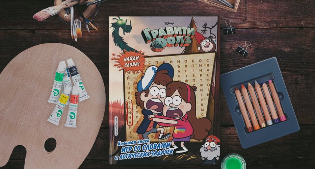 Среди многих популярных комиксов, выпущенных в нашей стране на основе зарубежных мультфильмов, «Гравити Фолз» по праву занимает особое место. Это произошло как благодаря достоинствам самого культового мультсериала, так и разнообразным сюжетам комиксов. Давайте же вновь вспомним приключения близнецов Диппера и Мэйбл – и ознакомимся с новинками! Придумал дедушке близнеца Создатель сериала «Гравити Фолз» и ряда книг по нему, художник и продюсер Алекс Хирш не раз вспоминал собственное детство, когда придумывал персонажей. Например, то, как он летом на каникулах искал всевозможных приключений в компании своей сестры-близнеца, Ариэль Хирш. Многие их проделки стали эпизодами сериала и книг. Это позволило Хиршу вообразить и представить всем даже то, о чем Алекс и Ариэль мечтали в детстве. Скажем, завести домашнюю свинку было заветной мечтой создателя сериала… Приобщиться к играм героев и потренировать логические способности поможет новинка «Гравити Фолз. Большая книга игр со