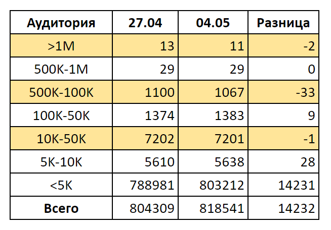 Увы, но всё падает. Не оправдались надежды на Клаву и Ленту — они не вышли в миллионники, а Клава даже падала к майским, но с 3 мая пошла вверх. Так что миллионников не прибавилось, а даже убавилось на две штуки. Рожков окончательно выходит в тираж и не держит аудиторию, а кто второй вылетел я упустил. Одержимые продолжают клепать по паре тысяч новых каналов в день. Буду требовать от властей возрождения карательной психиатрии. Людей надо спасать! В конце апреля выгрузил 1000 топовых статей Дзена и ужаснулся. Все вместе они собрали 47 млн просмотров. Столько же в декабре собирали всего сто топовых статей! В сентябре прошлого года ТОП-1000 статей собрала 145 млн визитов. Зенстат сейчас берет диапазон в 90 дней, а не 30, как в прошлом году, но статьи редко крутятся даже пару недель, так что при желании можно говорить тридцатикратном падении просмотров, но вряд ли временной период имеет значение, поскольку редко какая статья крутится хотя бы неделю. В декабре ТОП-100 видео набрали 194 млн