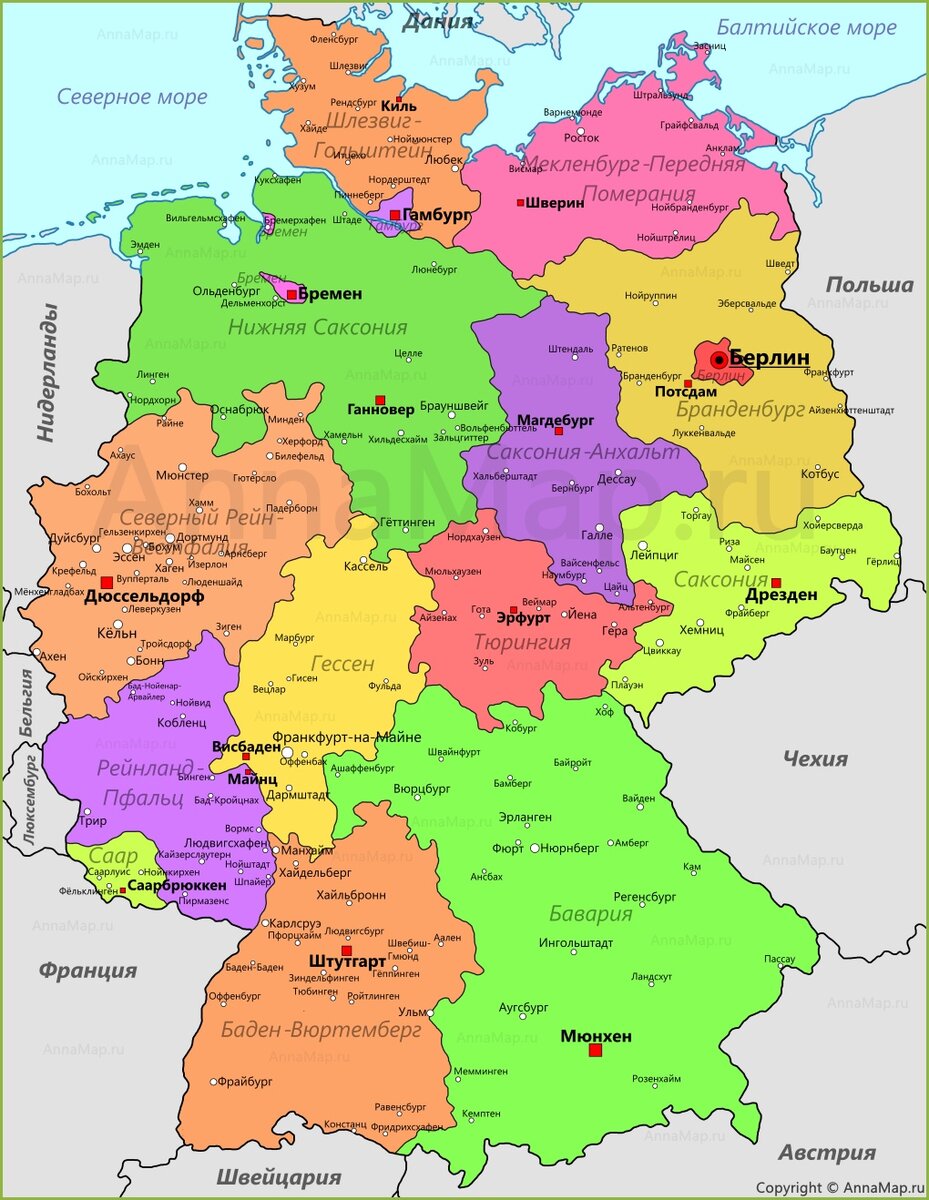 Географическое положение Германии Германия — государство, расположенное в Центральной Европе. Германия граничит на севере с Данией, на востоке с Польшей и Чешской Республикой, на юге и юго-востоке — с Австрией, на западе — с Бельгией, на северо-западе — с Люксембургом, на северо-западе — с Нидерландами. С севера омывается Северным и Балтийским морями.