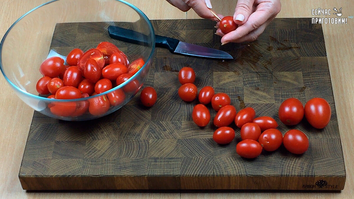 Сегодня, я к Вам с рецептом популярной закуски из помидоров, без которой не обходится ни один праздничный стол. Очень вкусная закуска, которая довольно простая в приготовлении. Закуска получается в меру соленая, в меру острая, в меру пикантная и очень вкусная! Как приготовить. Помидоры разрезаю на 2 части, а совсем маленькие помидорки накалываю зубочисткой, они так быстрее замаринуются. В чашу блендера кладу зелень петрушки (можно взять базилик) и чеснок. Добавляю сок лимона, мед, соль, черный перец и растительное масло. Все измельчаю блендером. Выливаю соус, покрываю пищевой пленкой и убираю в холодильник мариноваться хотя бы на час. Перед подачей на стол достаю помидоры из холодильника и перекладываю на тарелку. Помидоры получаются пикантными, кисло-сладкими и в меру острыми, такое сочетание вкусов просто изумительное. Ингредиенты: 👌 Как вам такой рецепт? Жду Вас в комментариях! Подписывайтесь на мой канал "Сейчас П
