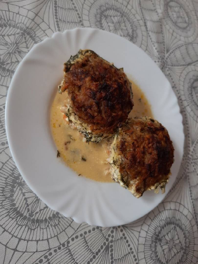 Ингредиенты: Фарш (свинина/говядина), Рис, Лук, Морковь, Капуста, Яйцо, Томатная паста, Соус:, Сметана, Вода, Соль, Специи, Зелень, Растительное масло Способ приготовления: Овощи очистите и помойте. Лук нарежьте мелкими кубиками. Морковь натрите на тёрке. Капусту мелко и тонко нашинкуйте. На растительном масле до прозрачности обжарьте лук. Затем добавьте морковь и продолжайте жарить до её мягкости. Добавьте капусту и продолжайте жарить до её мягкости. Затем добавьте томатную пасту и обжарьте все ещё пару минут. Готовую зажарку остудите. Рис тщательно помойте несколько раз, до прозрачности. Отварите его до полуготовности и остудите. Для приготовления соуса смешайте сметану с водой, добавьте мелко порезанную зелень, по вкусу соль и специи. 📌Также при приготовлении соуса можете дополнительно добавить томатную пасту. Либо сметану заменить майонезом. Смешайте фарш, зажарку и рис. Добавьте яйцо, по вкусу соль и специи. Сформируйте котлетки, выложите в форму для приготовления и залейте соусо