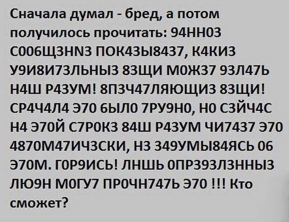 Когда вы прочитаете этот текст, то поймёте, что человечекие мозги, "достраивают" необходимые блоки информации.