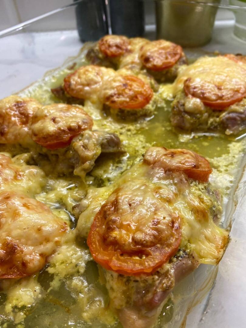 Очень вкусный и простой ужин 😊🙌🏻😋 Именно филе бедра получается просто превосходно! Оно сочное и нежное 🔥🔥🔥 Ингредиенты: Филе бедра, Помидор большой, Сыр твёрдый любой, Соль и перец , Приправа для мяса/курицы, Соус:, Майонез, Приправа хмели-сунели Способ приготовления: Филе промыть, подсушить и хорошо отбить молотком. Сделаем соус: Смешать майонез с приправой хмели-сунели, если есть орегано добавить )) поперчить по вкусу ) Подготовим форму для выпекания) Выкладываем мясо в форму: посыпаем приправой для мяса, солим и перчим) Натираем сыр на тёрке, помидор нарезаем на кружочки. На Каждый кусочек мяса теперь кладём соус, сверху помидорки по 2-3 кружочка. Сверху все натертым сыром и под фольгу, ставим в духовку при 180-200 градусах на минут 30, ориентируйтесь на свою духовку ) Затем оставим ещё минут на 10 -15 в духовке без фольги, чтоб сыр подрумянился. Можно включить режим гриль ) Вот такая вкуснота получается ) Можно украсить зеленью и подаём с любым гарниром )) ПРИЯТНО АППЕТИТА ?