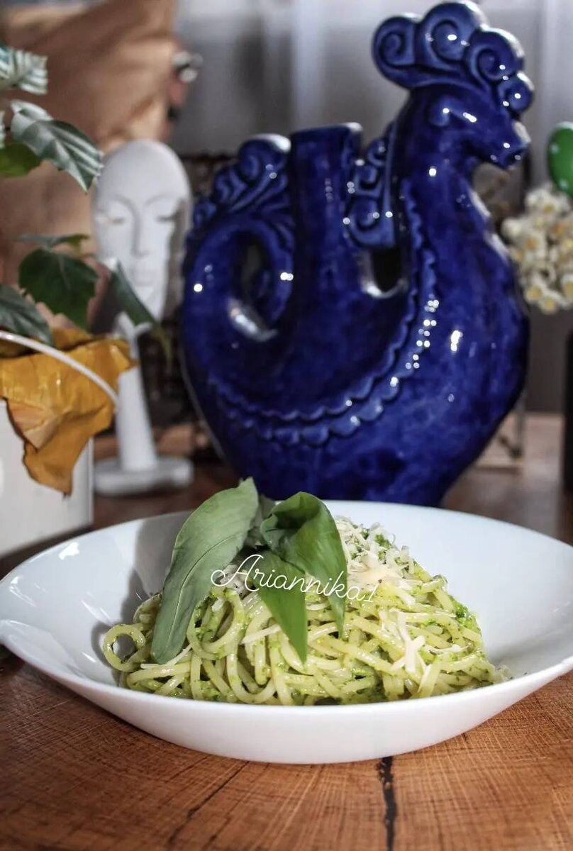 Черемша одной из первых приходит к нам весной, принося вкус свежей зелени и могучий заряд витаминов. Всё гениальное просто - СПАГЕТТИ С ПЕСТО ИЗ ЧЕРЕМШИ. Паста и черемша - отличная пара. Великолепное сочетание нейтральной по вкусу пасты и яркого пикантного соуса из черемши. Ингредиенты: Спагетти , черемши, оливкового масла, пармезана, орехов (кешью, кедровые, грецкие и тд), Лимонный сок , Соль Способ приготовления: Итак, отвариваем спагетти в подсоленной воде до состояния аль денте. В это время готовим соус из черемши. Промытую и высушенную черемшу (0,5 пучка) отправляем в чашу блендера, туда же - небольшой кусочек пармезана (~30 гр), 2-3 стл оливкового масла, маленькую горсть орехов (у меня кешью, можно кедровые или даже хорошие грецкие). Измельчаем, добавляем лимонный сок и соль по вкусу, ещё раз пробивает блендером около 1 мин.до максимально однородного состояния. Пасту откидываем на дуршлаг, смешиваем с песто и красиво сервируя, выкладываем на порционные тарелки. Сверху украшаем тё