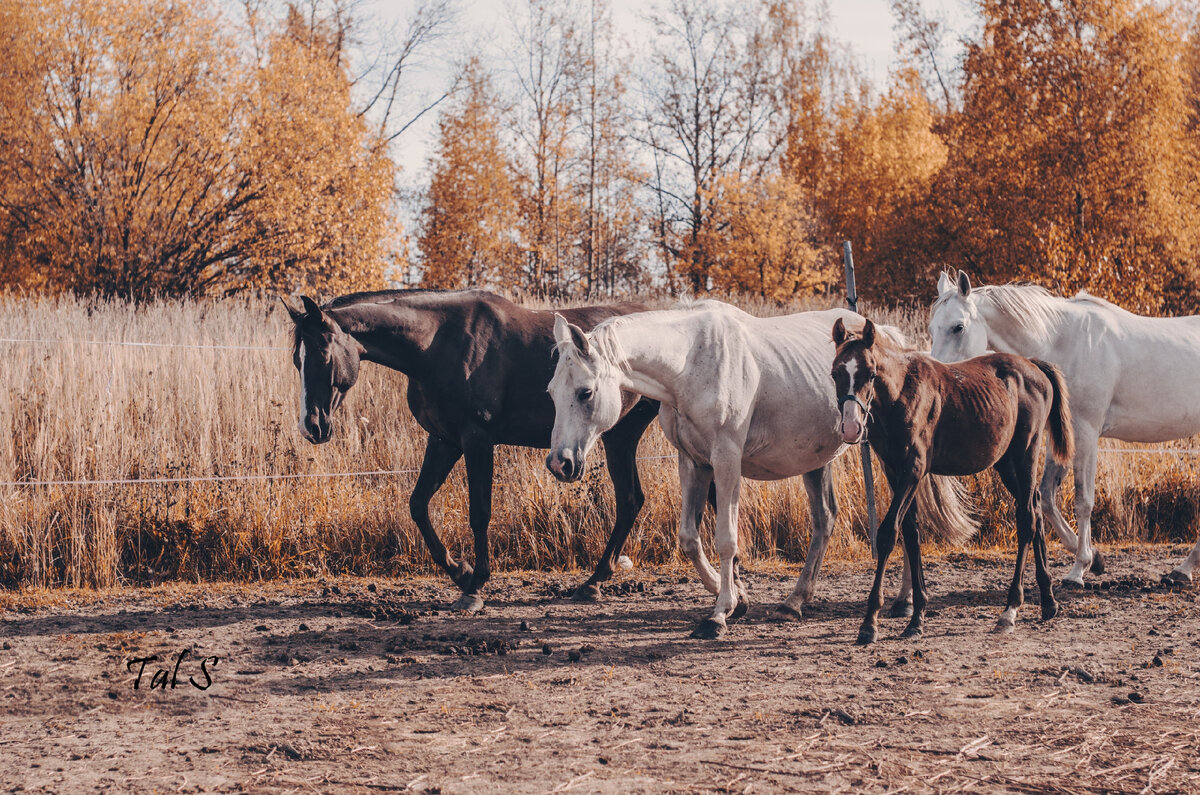Содержание кобыл в табуне. Наш опыт. Плюсы и минусы Наше маленькое хозяйство содержится нами с мужем, и исходя из этого, мы пытаемся автоматизировать, упростить наш труд, и попутно, безусловно, учитывать базовые потребности лошадей. Летом наши кобылы выгоняются в электропастух, в поле, где господствуют ветра, непогода, и солнце, если лето выдалось жарким. Так как, в пастухе нет еще навеса, лошади гуляют около 12 часов, чтобы их не съел летающий зверь, называющийся слепнем. В пастухе есть достаточное количество места для движения, всегда в доступе сено и вода. И та травка, которая успевает проклюнуться весной. Выгонять в пастух мы начинаем еще до появления травы, едва чуть подсохнет. Таким образом, лошади сами постепенно приучаются к зеленке, потребляя ее в небольших количествах по мере отрастания. И летом на пастбище или просто кушая скошенку, у наших лошадей нет никаких проблем с жкт. Жеребые кобылы конечно получают зерносмеси, которые дробим сами. В пастух рассыпается овёс для остал