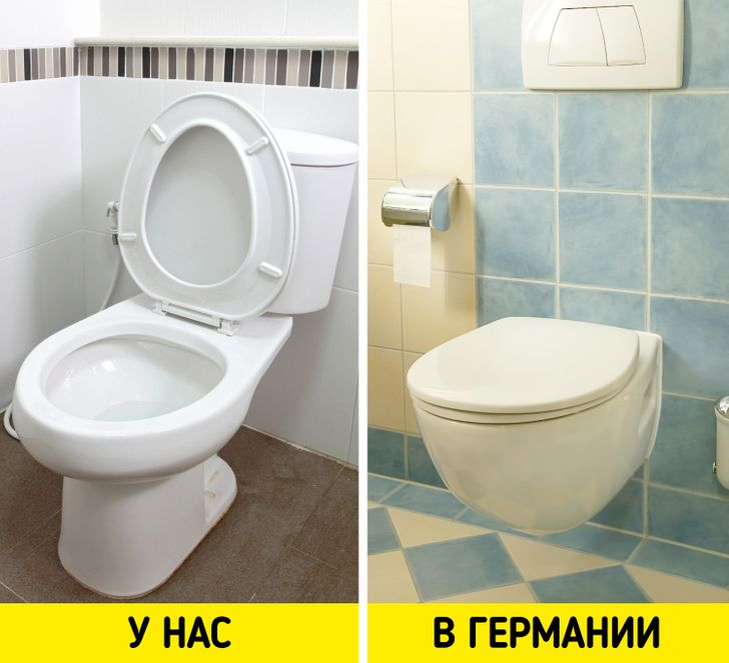 При поездке в любую страну, включая Германию, отмечают разве что самые поверхностные нюансы местного быта. А вот поселившись там надолго, можно получить гораздо более глубокое представление о национальных особенностях. И касаются эти особенности порой самых неожиданных вещей. 1. Унитаз вмонтирован в стену Именно такое решение предпочитают жители Германии. Мотивируется это очень просто: тратится меньше места, а уборка санузла упрощается. Практически всегда предусматривается 2 кнопки смыва. 2. Санузел оборудуют окном Подняв взгляд от унитаза вверх, можно обнаружить еще одно отличие от российских реалий. Причина также вполне понятна: типичный немецкий дом лишен вентиляции, редко используются и кондиционеры. В Германии предпочитают проветривать жилище традиционным способом. В ванных комнатах и в совмещенных санузлах роль окна заключается также в удалении излишней влаги. Это позволяет предотвратить распространение плесени. 3. Чаще всего двери изнутри запираются только с ключами Дверь в Герм