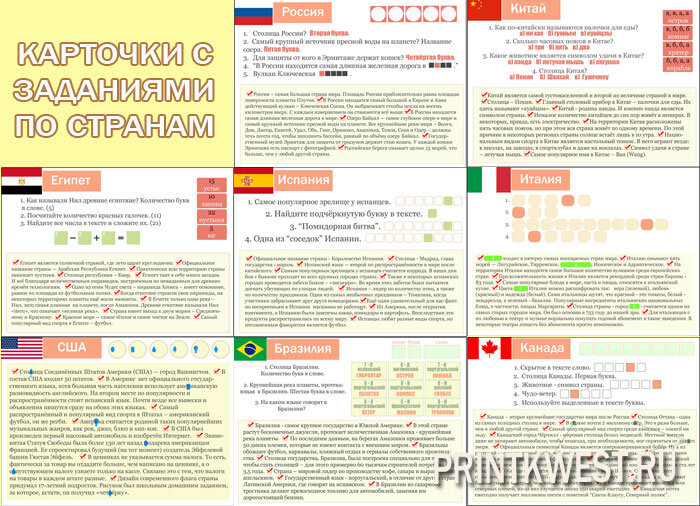 ✅ Активный познавательный квест для детей идеально подойдёт на выпускной в 2,3,4,5,6 классах. 💥 Сценарий квеста для детей "Путешествие по странам мира" универсальный, благодаря чему квест можно провести на улице или в помещении. Также можно провести на детский день рождения - дома или на природе. В сценарии квеста "Путешествие по странам мира" есть карточки с заданиями (8 штук = 8 стран) и набор активных игр - для улицы или большого помещения. Карточка представляет собой набор интересных фактов о стране. И на основании этих данных надо выполнить задания. Типы заданий в каждой стране разные. Выполнив задания, мы получаем ключевое слово. А чтобы узнать, где тайник со следующим заданием, надо добыть ещё ключевое число. Для этого назначается активное задание. После прохождения этого этапа участники получают число и ищут соответствие в дешифраторе. Для командной игры есть усложнения и бонусы, браслеты участников, победные жетоны, Диплом победителя. 💡Подробная инструкция к сценар