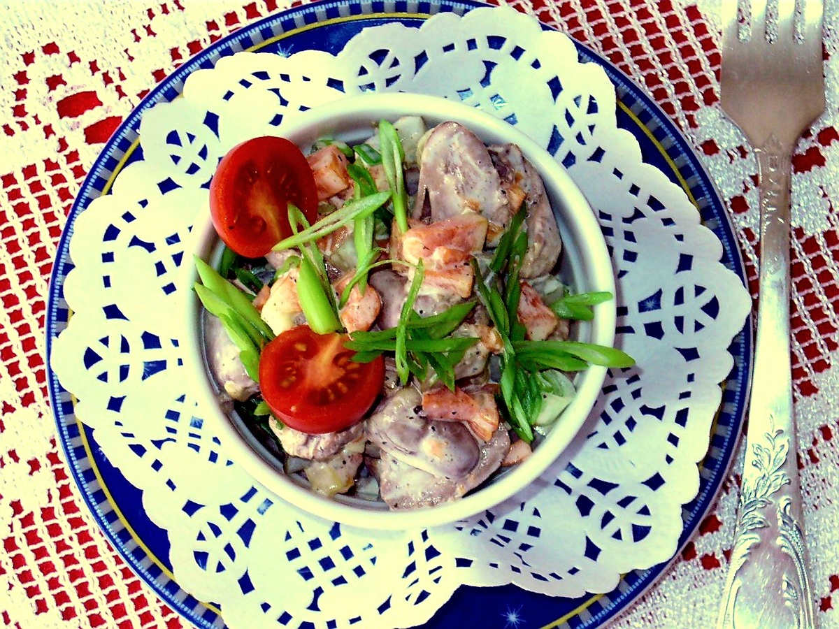 Простой и вкусный салат с морковью и сердцем) 500 гр куриных сердечек, отварить, остудить и разрезать вдоль. 2 морковки, вкусные (среднего размера), отварить, остудить, нарезать мелким кубиком, 3 - 5 зубчиков чеснока, нарезать очень мелко, через пресс пропускать не нужно, не тот эффект. Смешать морковь, чеснок, посолить и поперчить, отставить, пусть морковь подружится с чесноком. 2 небольших домашних маринованных огурчика, нарезать мелким кубиком. Смешать огурцы, сердце и морковь. Заправить зелёным луком, домашним майонезом и украсить помидоркой - черри. И можно подавать. И если у вас нет домашнего огурца или майонеза, не расстраивайтесь, берите магазинный, сейчас есть продукты хорошего качества. #салаты рецепты #мясной салат #как приготовить салат #салат #что приготовить на обед #кулинарные советы