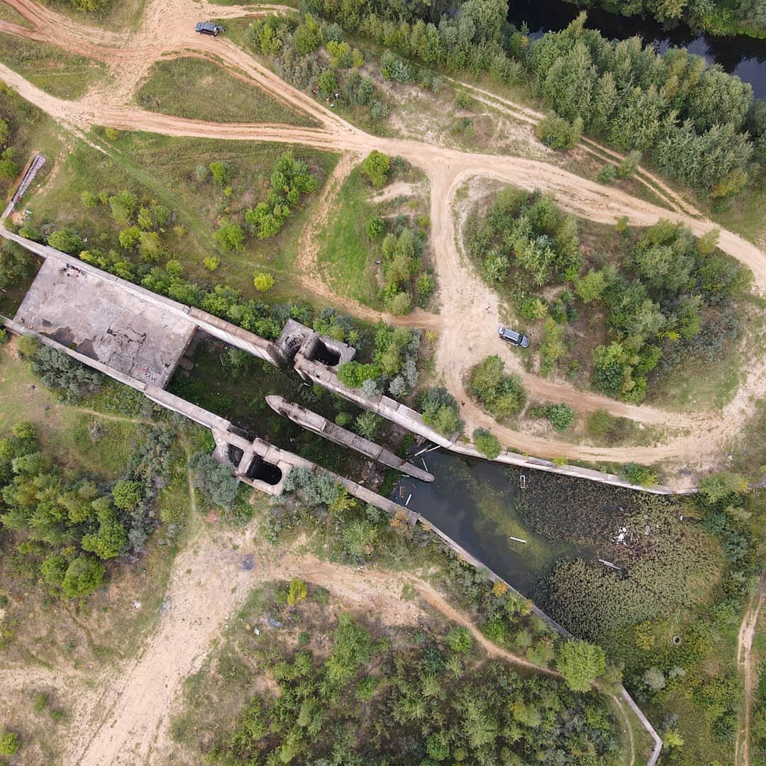 В продолжении поста о Мосте в никуда. Те два моста, которые успели возвести для проекта Подольского Моря и которые можно посетить, были построены в расчете на повышение уровня воды в предполагаемой зоне затопления. А сам уровень воды регулировала бы данная плотина, хотя возможно и другая, но сейчас рядом с Подольском в месте слияния рек Моча и Пахра стоит монументальная плотина из железобетона. Существует версия о том, что был пробный запуск воды, но она вся ушла в карстовые пустоты и поэтому проект закрыли. Это конечно маловероятно, т.к. на этапе строительства никто воду не смог бы пустить, да и куда, и откуда? Как набрать тот объём воды, чтобы понять, что она ушла. Да и опять же, наверняка геологическая разведка наверняка давала какой-либо отчёт с рисками подобных последствий, опыт был. Скорее всего проект не завершили из-за финансовой нехватки в конце 80-х гг., а она была тогда повсеместно в СССР. Теперь недалеко от Москвы можно посетить данный объект. Доступ свободный.