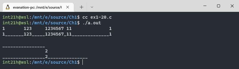 Упражнение 1.20. Напишите программу detab, которая бы заменяла символы табуляции во входном потоке соответствующим количеством пробелов до следующей границы табуляции. Предположим, что табуляция имеет фиксированную ширину n столбцов. Следует ли сделать n переменной или символическим параметром?
