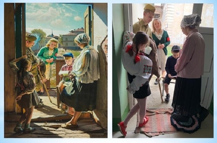Ученики школ Гомельского района создают фотокопии знаменитых художественных полотен, посвященных Великой Отечественной войне. Учащиеся почти тридцати учреждений образования со всех уголков крупного района Гомельщины стали участниками квест-игры «Наследники Победы». Школьники предлагают в Год исторической памяти всем желающим присоединиться к акции. Вообще это патриотическое движение за последних года три в Гомельском районе стало очень популярным у детей. Организатор акции — Центр творчества детей и молодежи Гомельского района — ежегодно кардинально обновляет содержание квест-игры. Ее участники только в последний момент знают о заданиях и включаются в выполнение. — Игра проходит в четыре этапа. В каждом задании детям нужно задействовать и интеллект, и смекалку, и физические данные, — объясняет директор центра Татьяна Коржова. — Один из этапов – «Виртуальная доска», прошел в онлайн-режиме. Дети внимательно рассматривали известные картины Андрея Горского, Александра Лактионова и Николая