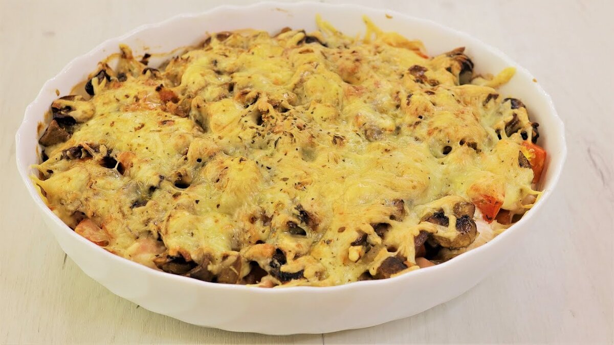 - Выложить грибы в форму для запекания на овощи и курицу.