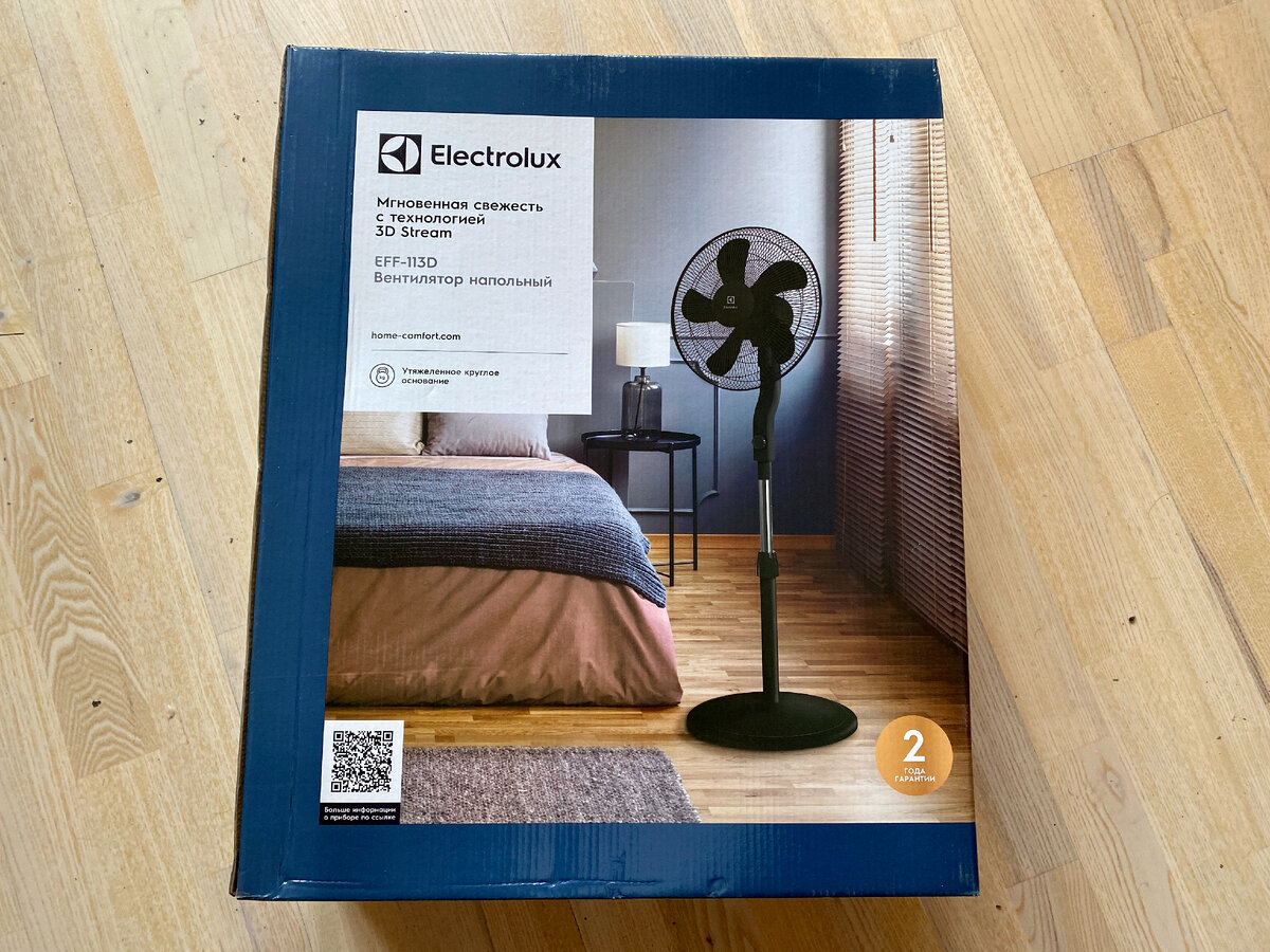 Приветствую, мои дорогие, любимые читатели. Прошлым летом страдал от жары в квартире, было невозможно спать. Сказал бы даже, что невыносимо. Цены на вентиляторы и кондиционеры были космическими, поэтому перетерпел. В этот раз купил напольный вентилятор заранее, пока есть в наличии и более менее адекватная цена. Сплю в маленькой комнате, а для неё, как мне кажется, вполне хватит напольного вентилятора. Не захотел ставить кондиционер, чтобы не продувало. Да и дорого. Напольный вентилятор Прочитал обзоры, отзывы и пришёл к выводу, что модель Electrolux EFF-113D является самым оптимальным вариантом по соотношению цена\качество. 3D вращение, потребляет 50 Вт, 3 скорости, регулируется по высоте. Стоимость порядка 8000 рублей. Собрал и поставил в маленькую комнату рядом с кроватью. Высоты хватает, кровать у меня высокая. Что касается шума, то максимальный уровень оценивается в 60 дБ. Действительно, на 2 и 3 скорости он шумноват, но вполне себе тихо работает на 1 скорости, которой хватает для