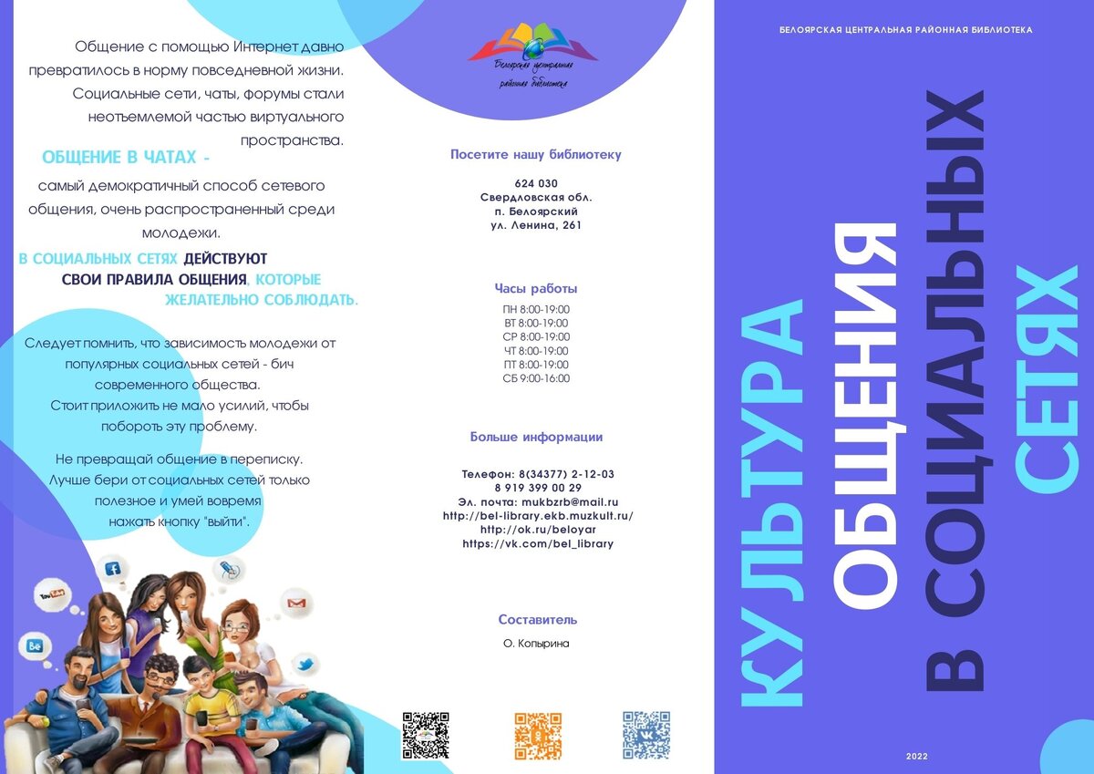 Библиограф отдела обслуживания Белоярской библиотеки Ольга Копырина подготовила буклет "Культура общения в социальных сетях".