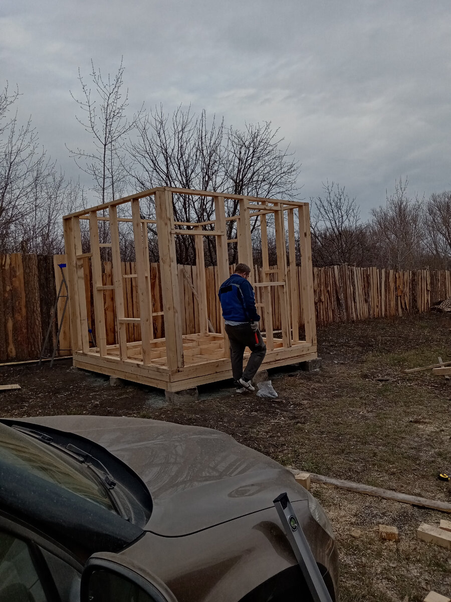 Часть 2 Вот наступили ещё одни выходные, и мы с мужем приехали снова строить домик На этот раз мы поставили все стены Далее начали делать крышу Продолжение следует..... Подписывайтесь, будет интересно)