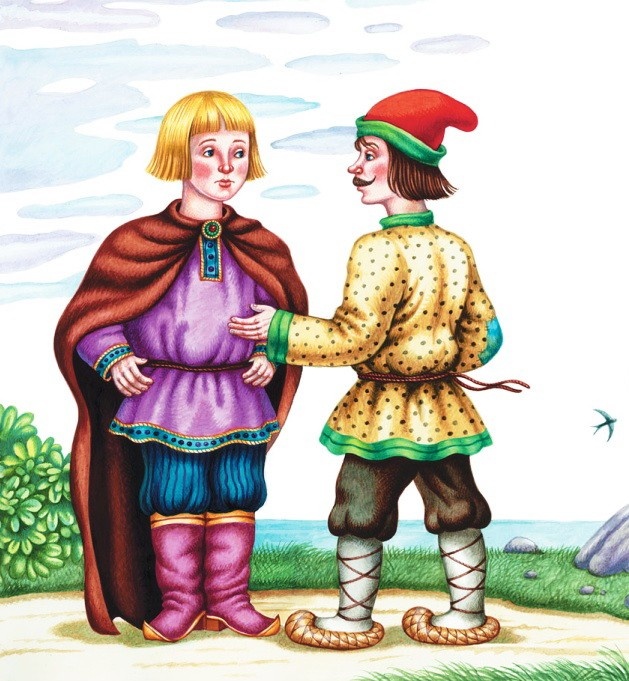 Русская сказка Жил да был мужик, прижил двух сыновей и помер. Задумали братья жениться: старший взял бедную, младший — богатую; а живут вместе, не делятся. Вот начали жёны их меж собою ссориться да вздорить. Одна говорит: — Я за старшим братом замужем: мой верх должен быть! А другая: — Нет, мой верх — я богаче тебя! Братья смотрели-смотрели, видят, что жёны не ладят, разделили отцовское добро поровну и разошлись. У старшего брата что ни год, то дети родятся, а хозяйство все плоше, да хуже идет: до того дошло, что совсем разорился. Пока хлеб да деньги были – на детей глядя, радовался; а как обеднел – и детям не рад! Пошел к меньшому брату: — Помоги в бедности! Тот наотрез отказался: — Живи, как сам знаешь, — у меня свои дети подрастают. Прошло немного времени, опять пришёл бедный к богатому. — Одолжи, — просит, — хоть на один день лошадь: пахать не на чем! — Сходи на поле и возьми на один день, да смотри — не замучь! Бедный пришёл на поле и видит, что какие-то люди на братниных лошадях